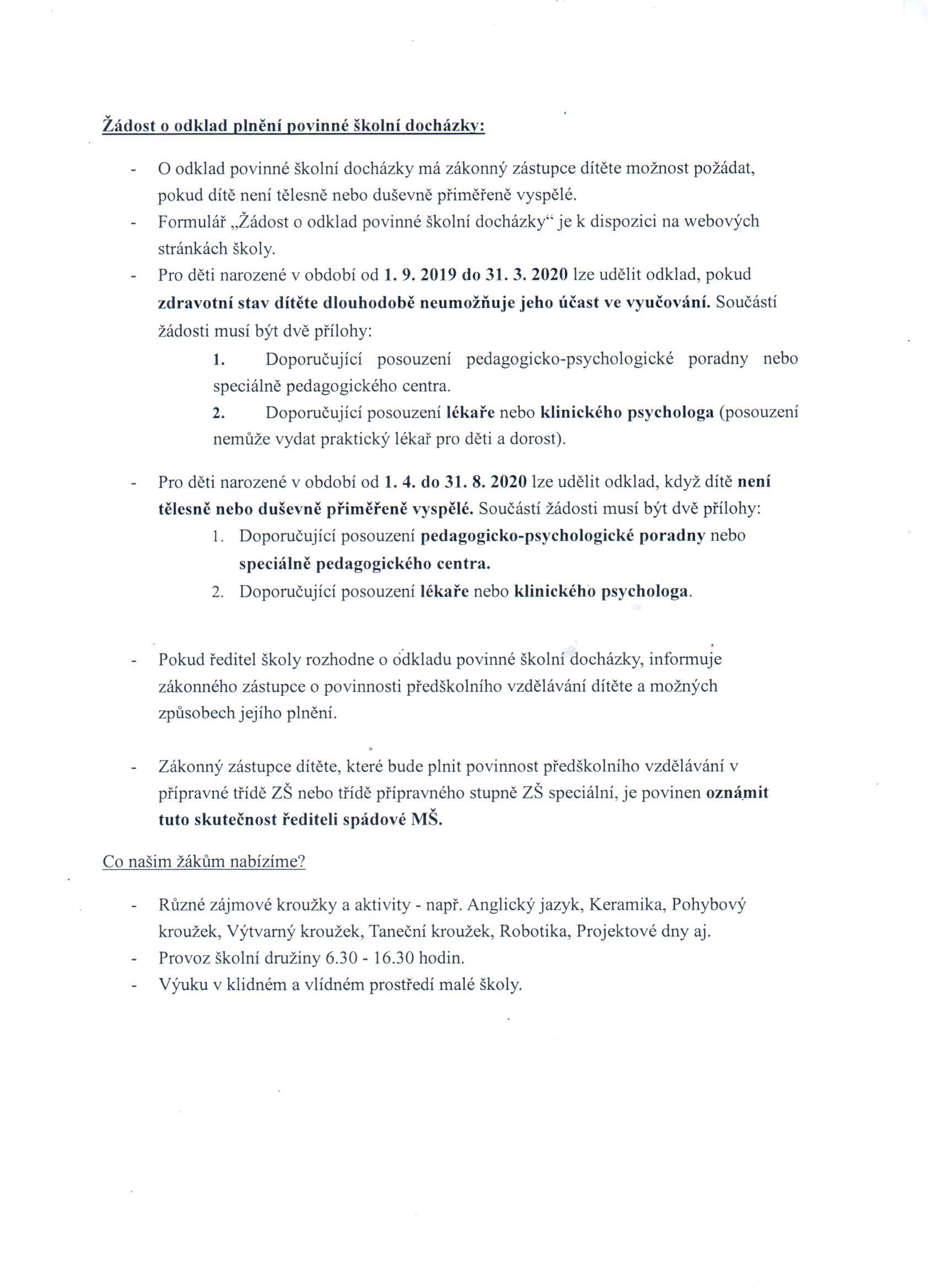 Dopis PPP k odkladům do první třídy